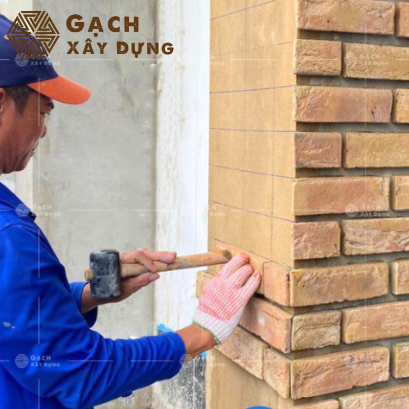 - Sử dụng búa chuyên dụng để gõ nhẹ mỗi viên gạch, đảm bảo việc tiếp xúc và gắn kết chặt chẽ.